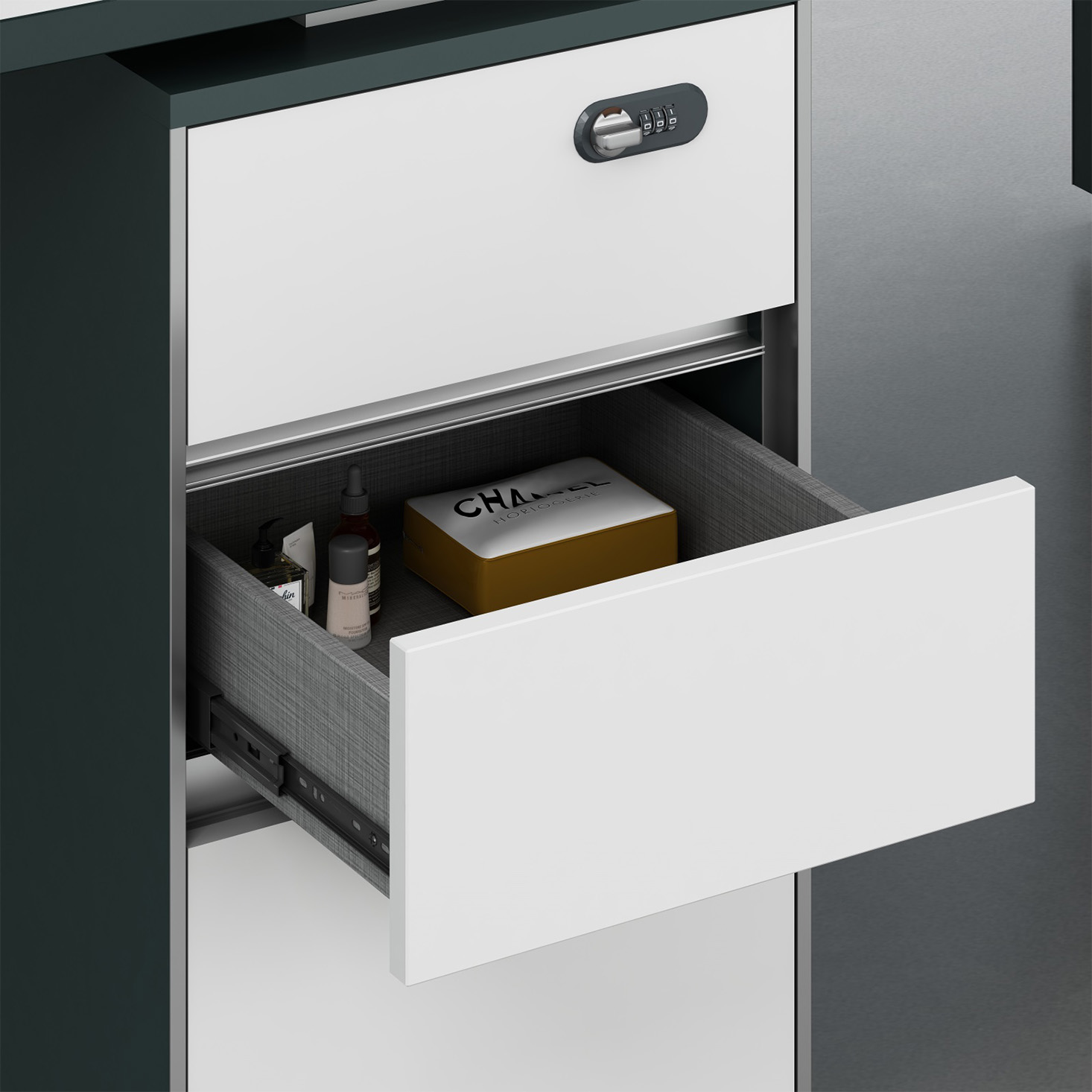 - A:澳洲尤加利+進(jìn)口暖白 B:進(jìn)口暖白+暗夜綠 不含桌屏(抽屜帶密碼鎖)